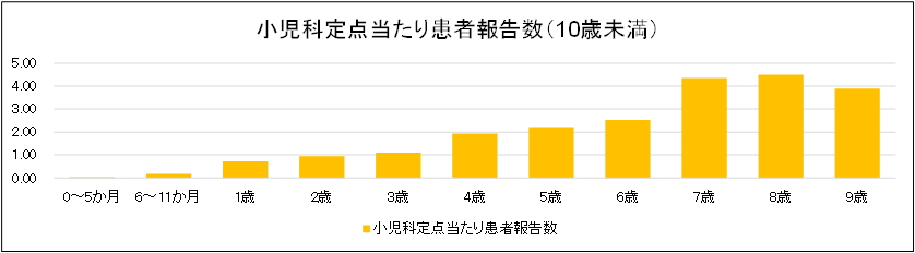 小児科定点医療機関からの報告は、10~14歳が最多でした。