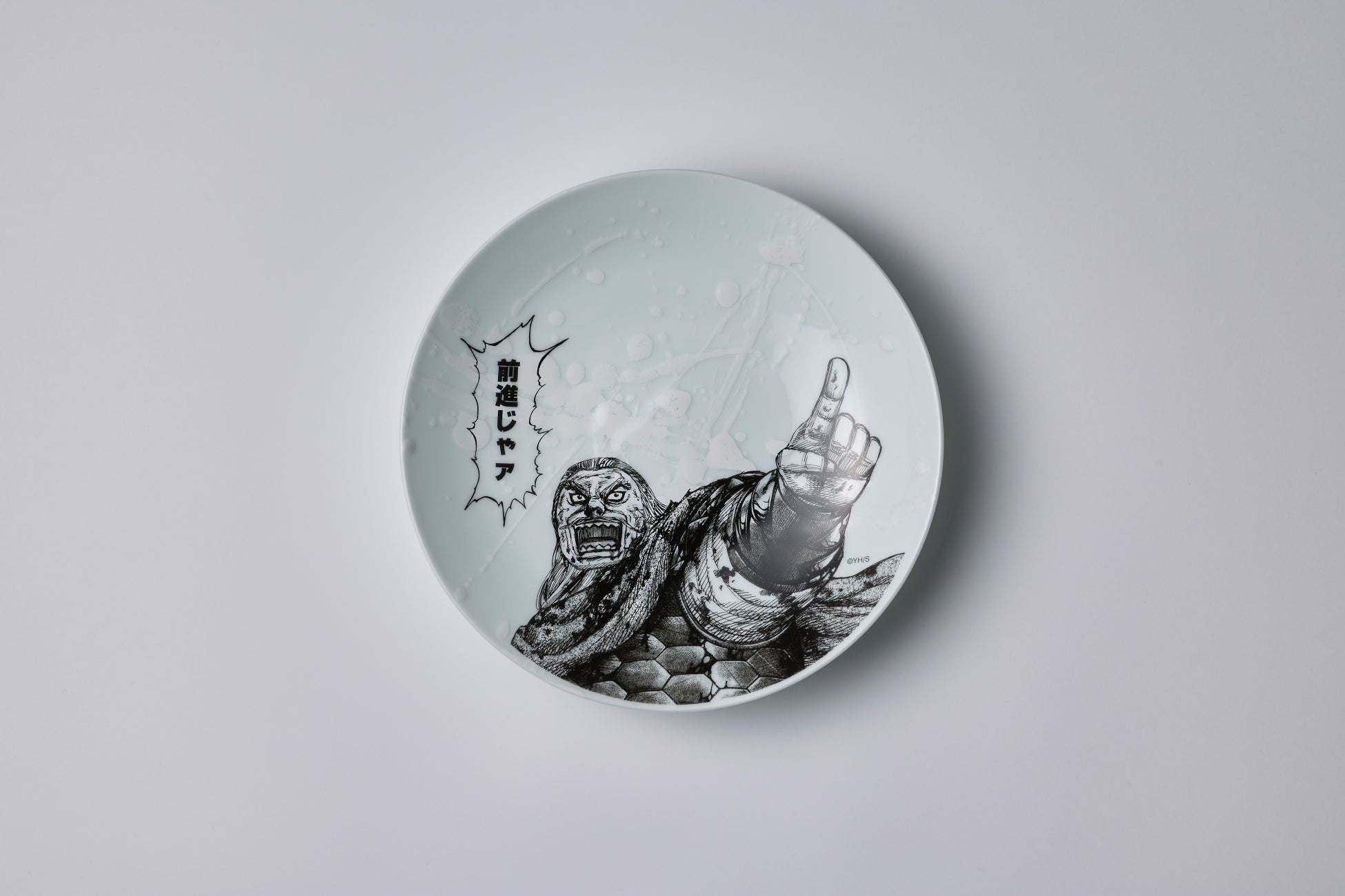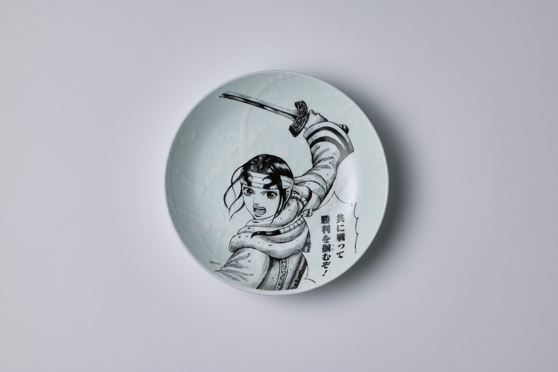 本作品は、『キングダム』の物語の核となる「思いの火」をテーマに、信(しん)、嬴政(えいせい)、羌瘣(きょうかい)、王騎(おうき)、麃公(ひょうこう)の5人のキャラクターの名シーンを厳選。『キングダム』が持つ熱量と、有田焼特有の白磁の美しさ、そして井上祐希氏独自の技法である『飛沫(しぶき)』が織りなす、唯一無二の作品に仕上げられています。
