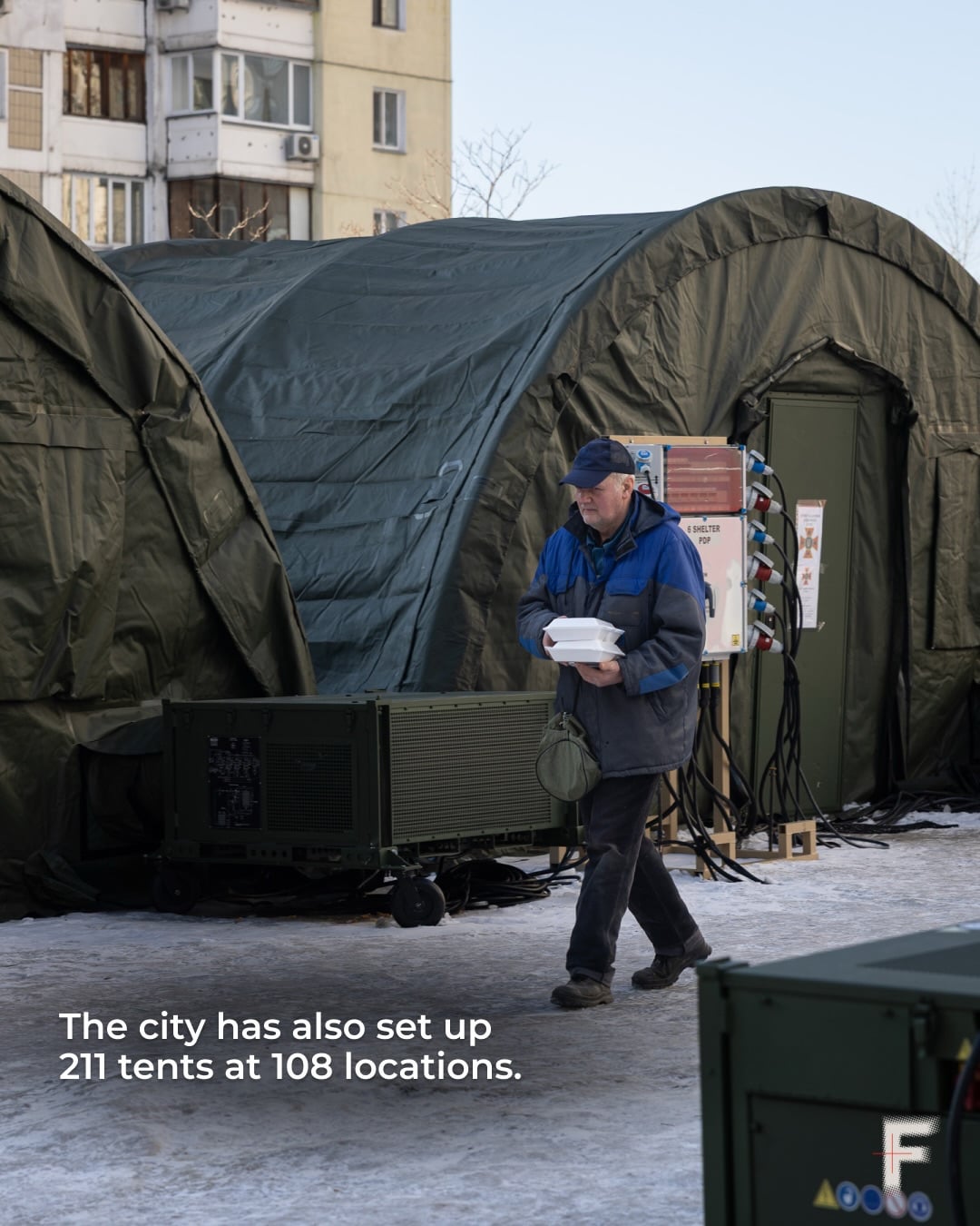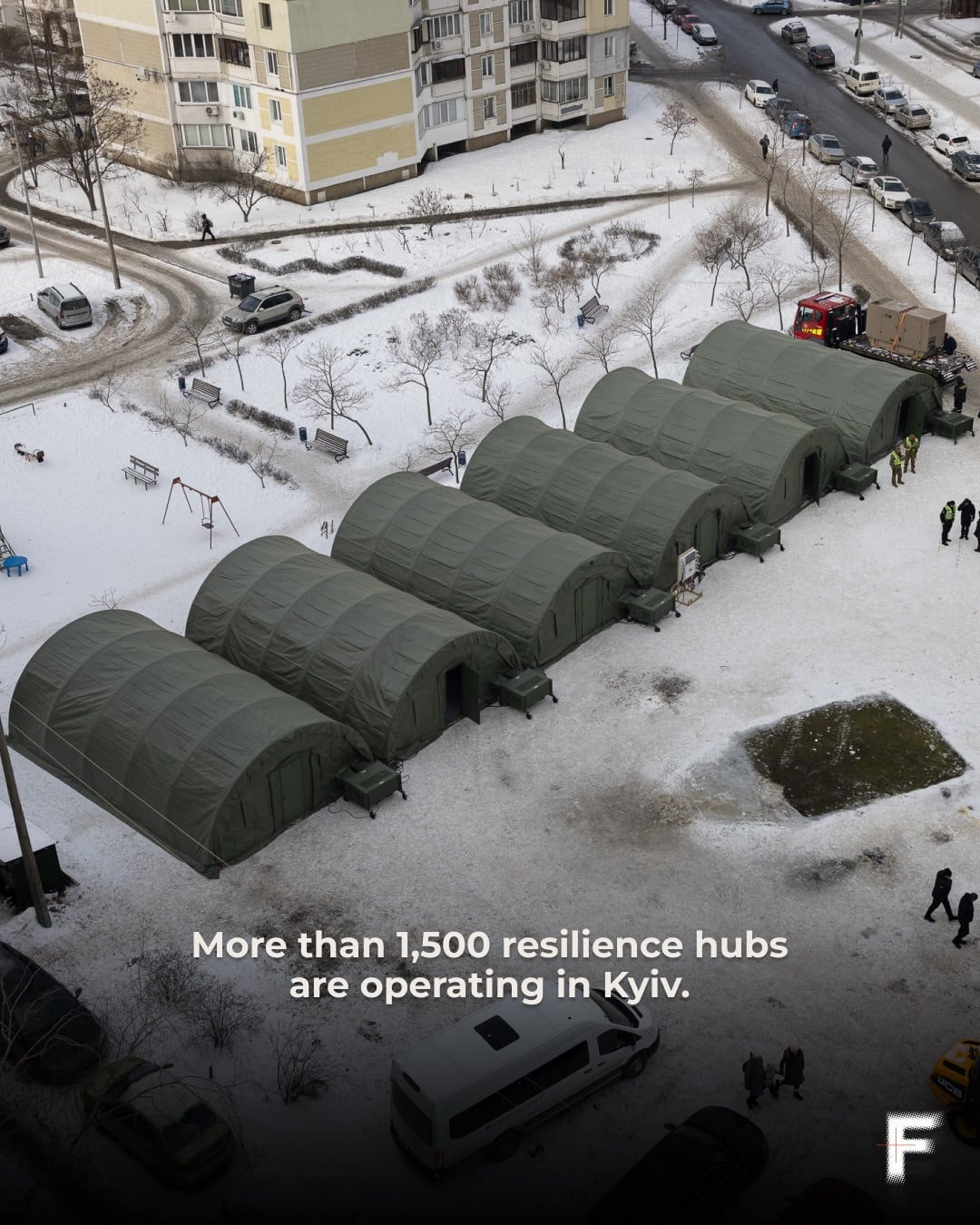 本格的な侵攻から1448日目、キエフに日が沈んだ。都市内のテント都市: キエフの 1,500 か所のハブにある食料、洗濯、充電ステーション