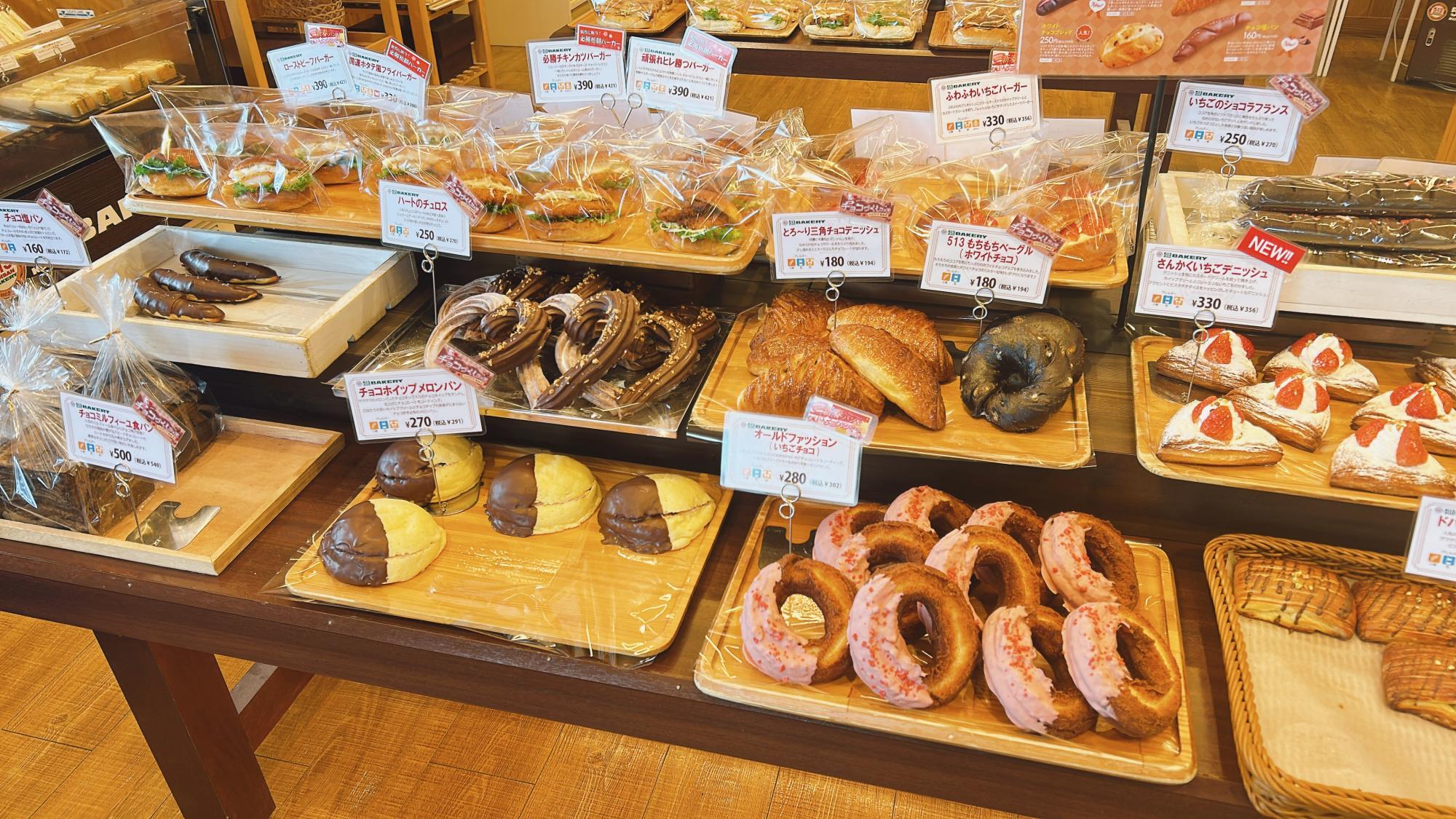 今月はチョコづくしフェアが開催されているほか、いちごを使ったパンも種類豊富に並んでいますよ。
