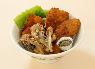 新潟県代表として決勝戦に進んだのは、北陸道・米山SA(下り線)で提供している「柚子胡椒香る越佐丼」です。佐渡名物をイメージしたブリのカツをはじめ、越の鶏チキンカツ、雪国まいたけの天ぷらを盛り込み、新潟を満喫できる一杯に仕上げています。添えられたピリ辛で風味豊かな神楽南蛮柚子胡椒で味変も楽しめる一品です。