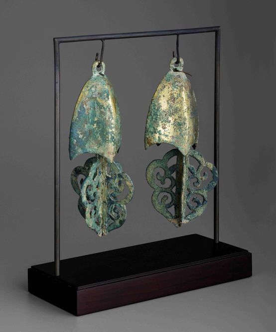 朝鮮といえば白磁や高麗青磁の印象が強いですが、吉田氏は百済や新羅の仏教遺跡にまつわる品々にも着目して収集しています。それもひとえにシルクロードにおける大陸の最東端が朝鮮半島に位置していたからでしょう。精巧な金属製の風鐸ふうたくや華やかな装飾の宝相華文ほうそうげもんの塼せんなどは大陸での東西交流の軌跡がしのばれます。点数は多くありませんが、シルクロードという視点から見ると奥深いコレクションとなっています。