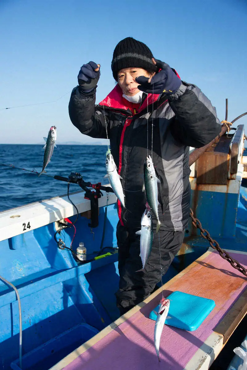 5連、パーフェクトで寒サバを釣り上げた阿部志氏さん