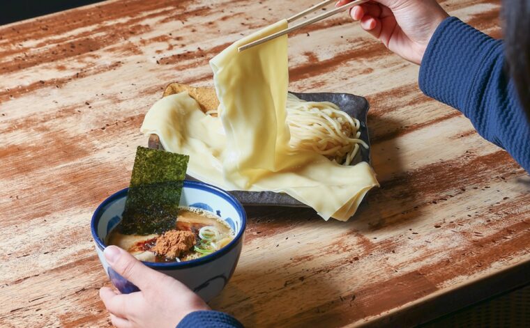 そもそもビャンビャン麺とは、麺を打つ際に調理台へ叩きつける「ビャンビャン」 という音から名付けられたとされる、中国の陝西省(せんせいしょう)発祥の幅広麺のこと。
