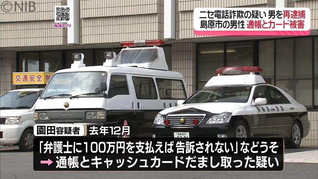 島原市内の80代男性から、通帳とキャッシュカードをだまし取ったとして、24歳の男が再逮捕されました。