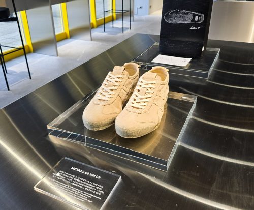 開所式で披露された、アーティスト・山下智久氏がデザインを手がけたオリジナルシューズ「MEXICO 66 NM L9」も展示されています。