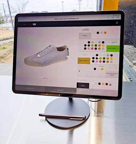 ストアでは、ブランドの歴史を振り返る展示と、ファクトリーで生産される「NIPPON MADE」や「THE ONITSUKA」の販売に加え、シューズのカスタムオーダーも展開しています。