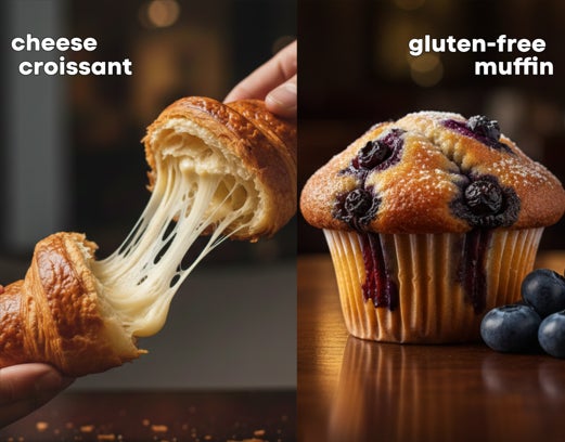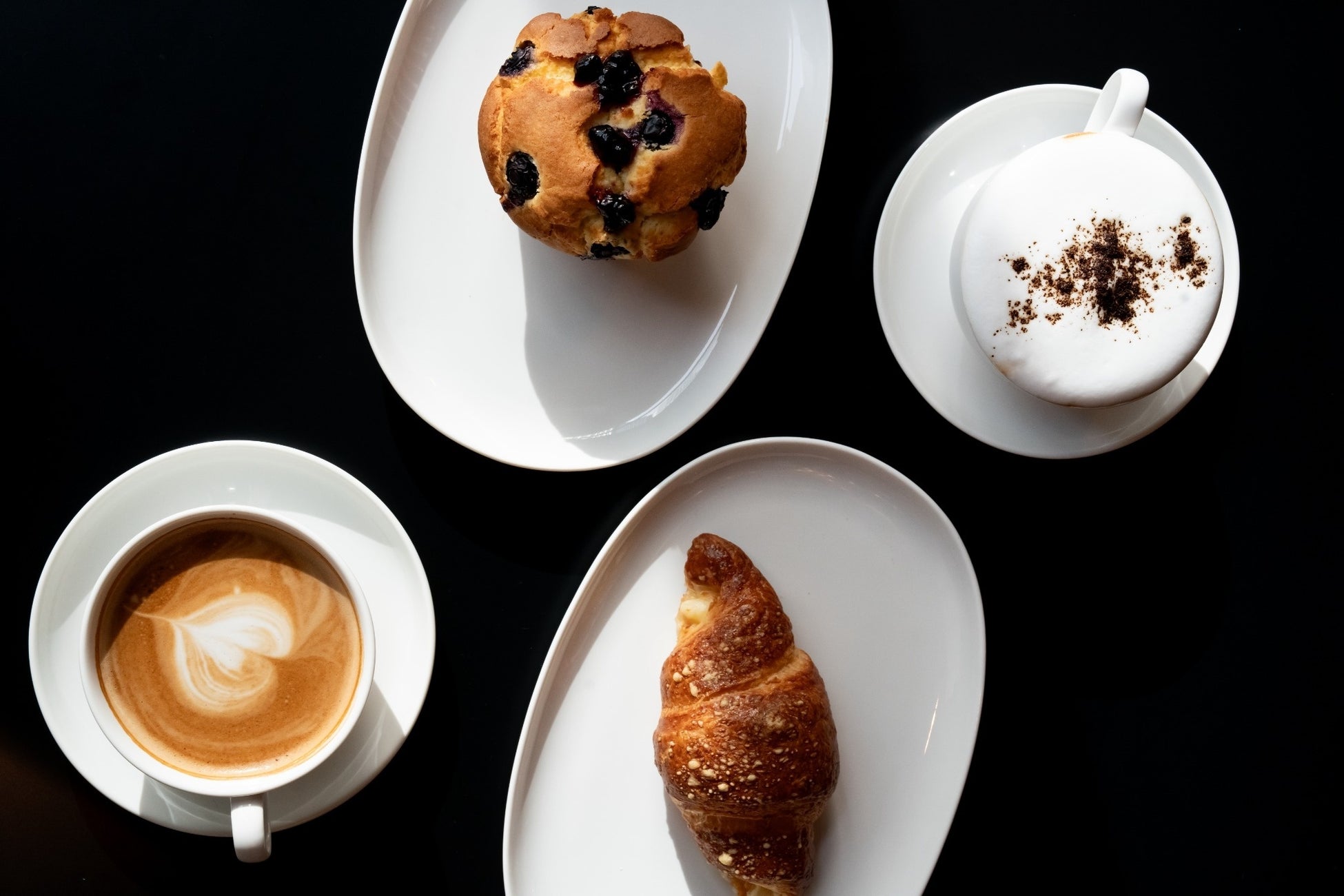 ペストリーには、香ばしい チーズクロワッサン と グルテンフリーマフィン をご用意しています。