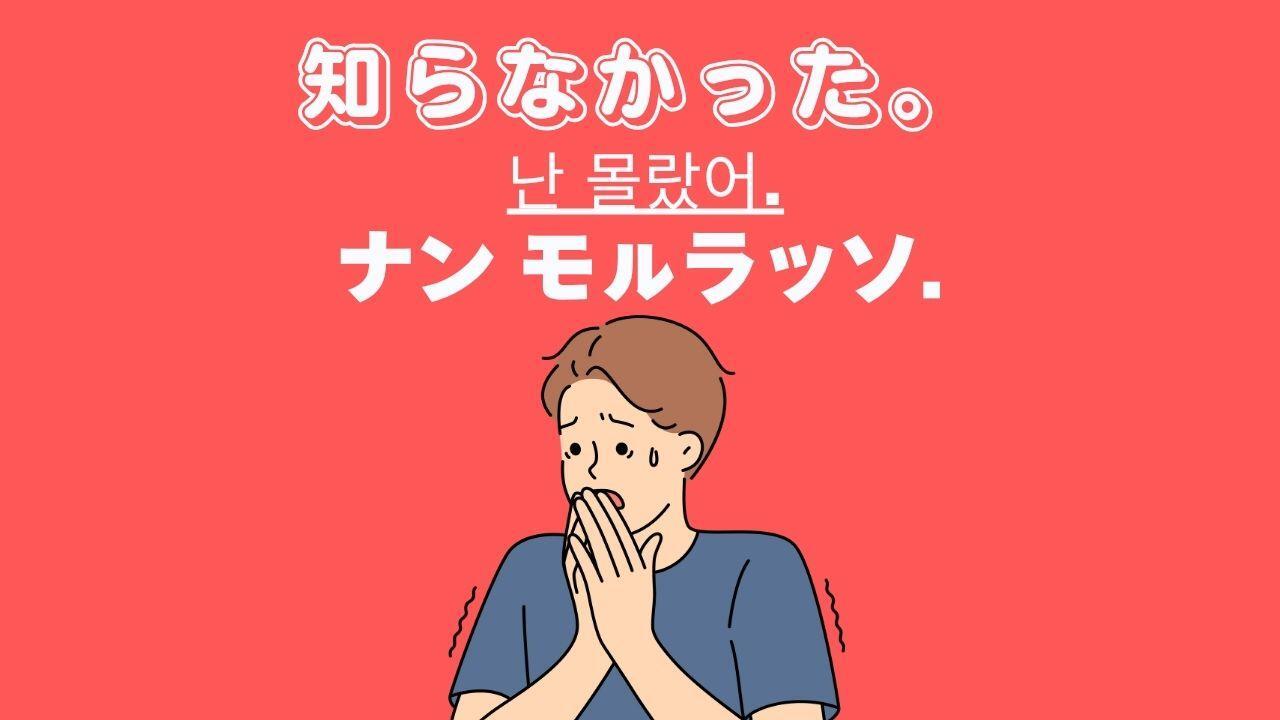 知らなかった。 난 몰랐어. ナン モㇽラッソ.
