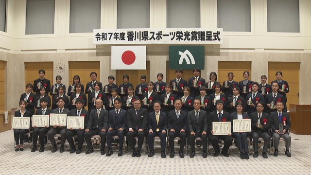 2025年度に活躍した香川県ゆかりのスポーツ選手をたたえる「スポーツ栄光賞」の贈呈式が行われました。