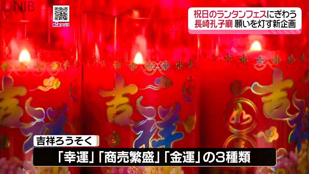 「幸運」「商売繁盛」「金運」を願う3種類のろうそくがあり、それぞれの願いの灯りが孔子像前に並べられます。