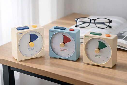 ロア・インターナショナルは2月9日、スマートライフツールブランド「Nelna」から、時間を“数字”ではなく“色”で管理する新発想の静音タイマー「Focus-On Timer」に新色「トマト」「バター」を追加し、予約販売を開始した。価格は4500円。