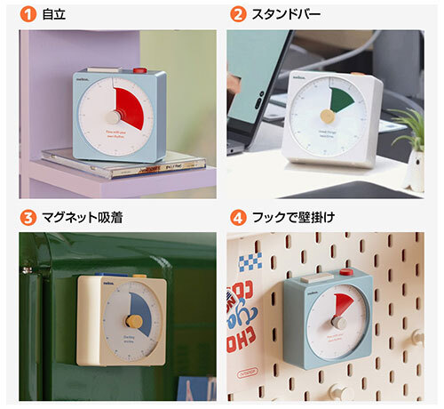 新製品は、シンプルな操作性ときれいな色調設計が特徴の静音タイマー。ダイヤルを回すだけでタイマーがスタートし、時間の経過で色が変わるので、わかりやすいのが特徴だ。