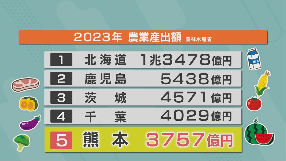 農林水産省の調べでは、農林畜水産物の生産額全国5位の熊本。農業県としての認知度は十分です。