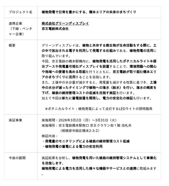 グリーンディスプレイ×京王電鉄「植物発電で日常を豊かにする、橋本エリアの未来のまちづくり」