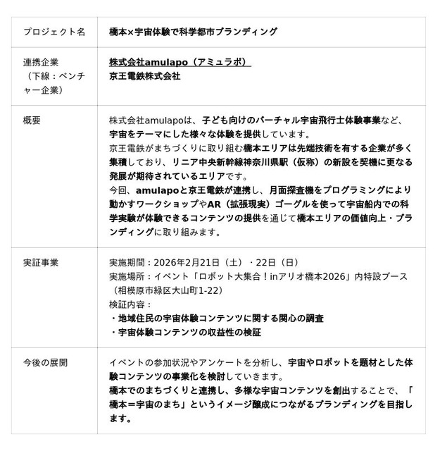 amulapo×京王電鉄「橋本×宇宙体験で科学都市ブランディング」