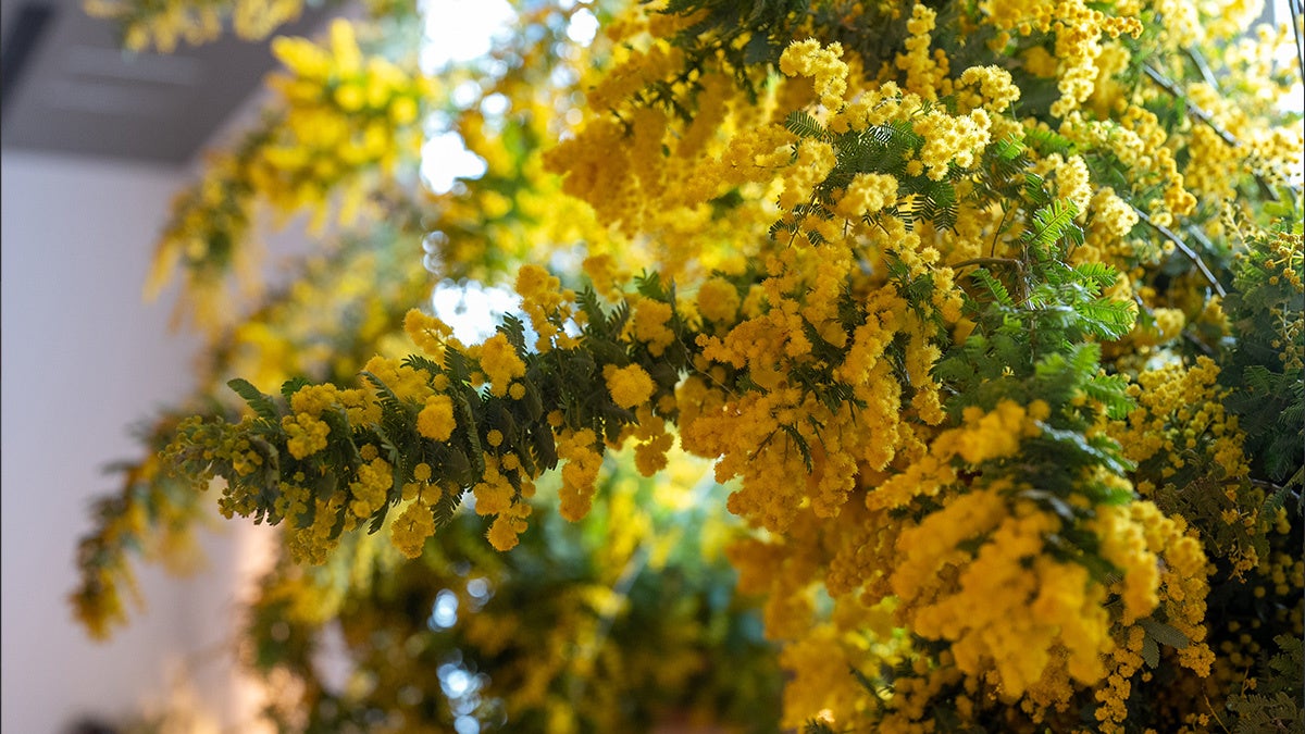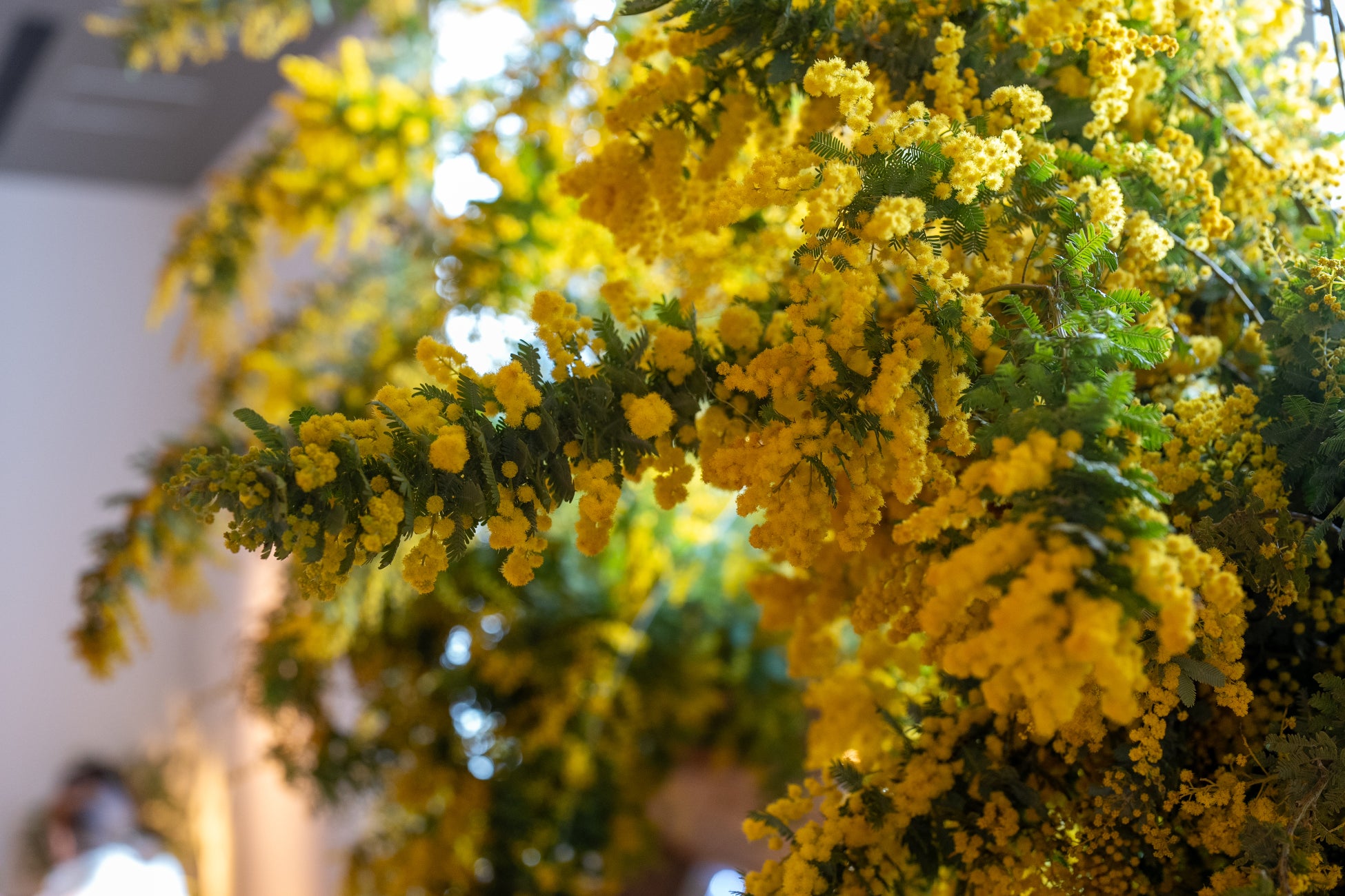 毎年好評のGANON FLORISTによるミモザフォトスポット。 ドレスコードの「幸せの黄色|HAPPY YELLOW®︎」を身につけて撮影して下さい。