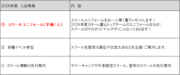 ☆入会特典としてスクール生の皆様にスクールユニフォームをお一人様1着プレゼントいたします!(スクールピステは販売となります。)
