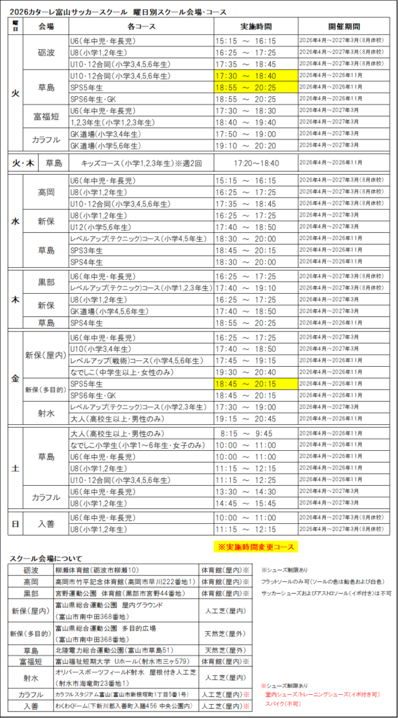 ・2026年度の会場・曜日・クラス・時間の変更をご確認の上、お申込みください。