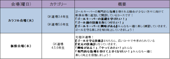 ■新保会場(木)〈GK道場(4,5,6年生)〉