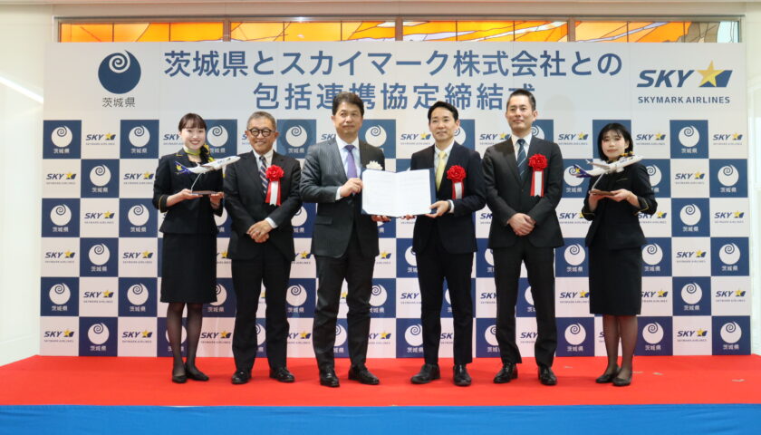 2026年2月13日、茨城県とスカイマークは、茨城空港の利用促進及び地域経済の活性化を図るとともに、地域の様々な課題に迅速かつ適切に対応し、県民サービスの向上と持続可能な地域社会の実現に資することを目的に、下記のとおり「包括連携協定」を締結しました。