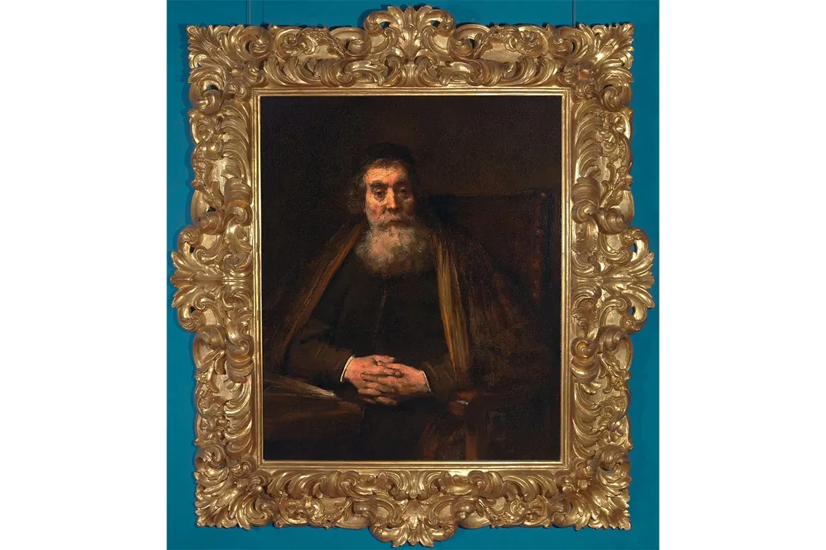 筋骨隆々の男たちが、カンバスから飛び出そうな勢いで前面に押し出されている混乱したシーンは、聖書の物語の一場面で、そこに登場するモーセが活劇のヒーローのように描かれている。【作品の詳細はこちら】