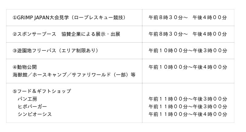 ・休園日のパークを特別に開放し、競技観戦に加え、遊園地・動物展示・飲食物販なども一部利用可能です。