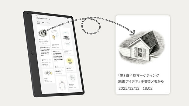 そのほか、手書きメモ、ウェブ情報、アイデア断片を一元管理する「インスピレーションスペース」も備えており、思考を止めることのない情報の整理が可能になる。