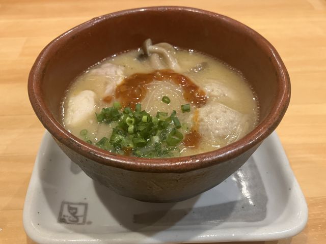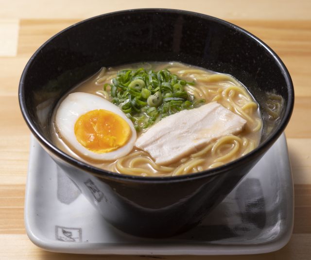 シメの一杯におすすめの「鶏白湯らーめん」は、鶏のうまみが凝縮したスープがクリーミーな口当たりで、味玉と鶏むね肉をトッピングしています。