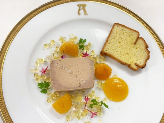 アピシウス伝統のフォアグラのテリーヌ ソーテルヌのジュレ 杏のコンポート