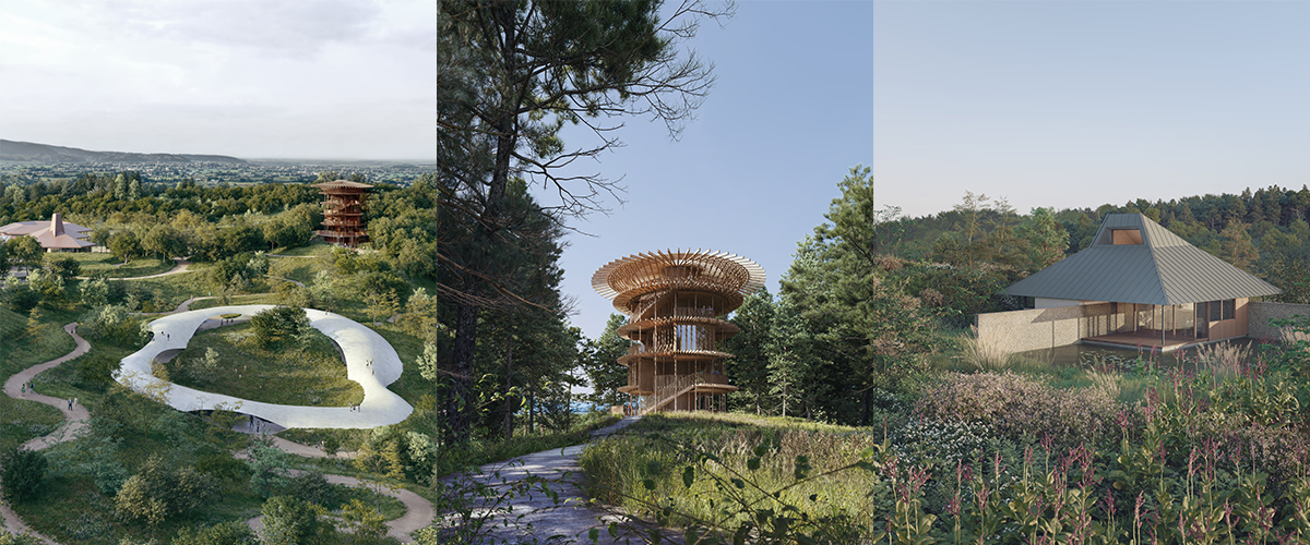 人と自然の新たな関係性を探求する未来のネイチャーパーク「Play Earth Park」。その世界観を体感できるもう一つの要素が、建築を通じた体験作りだ。国内外で活躍する8組の設計者が、各エリアの特性を生かした空間と体験をデザインしている。