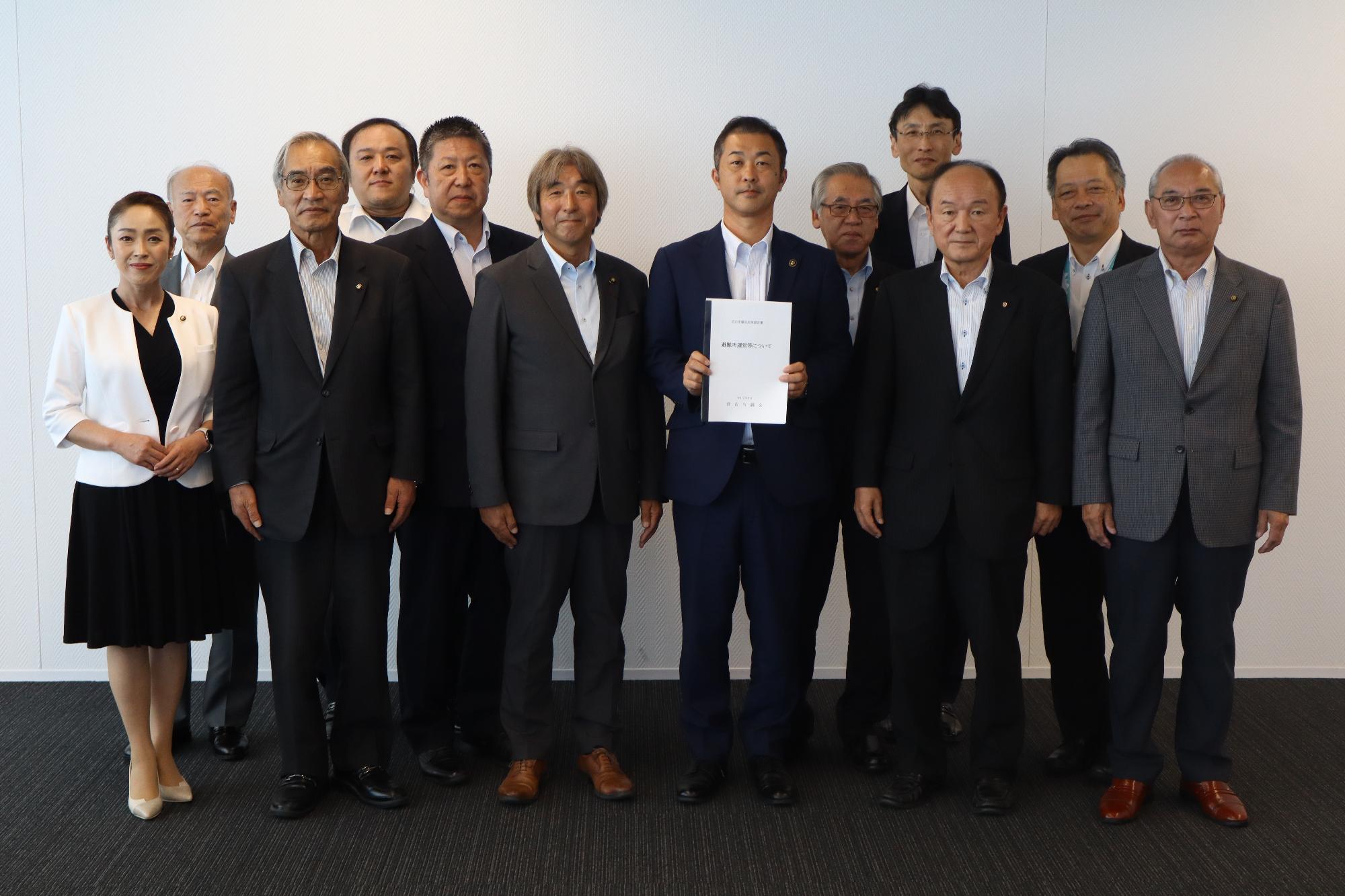 令和7年9月30日(火曜日)、橋本議長、竹花副議長、総務常任委員会委員が出席し、中村市長へ政策提言書を手渡しました。