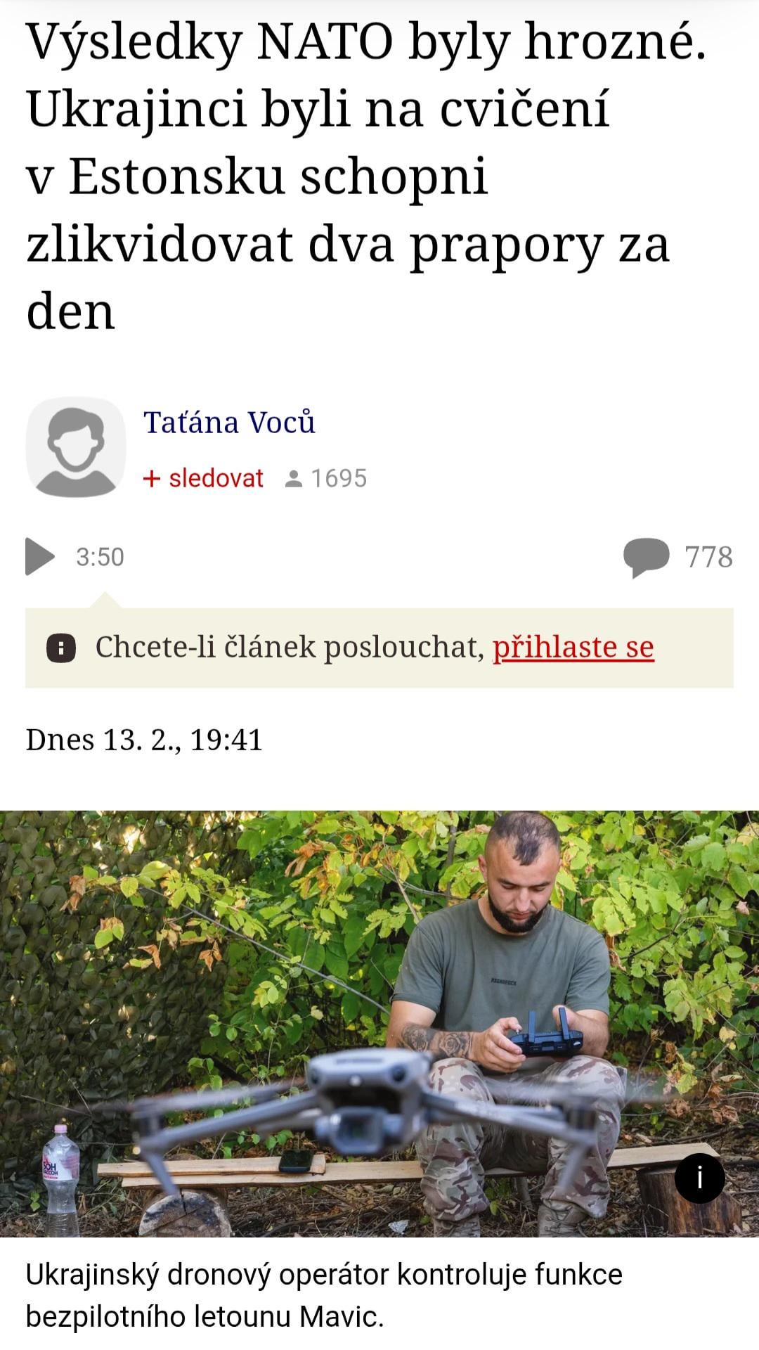 Twitter Pinterest Facebook Tumblr LinkedIn Bluesky Reddit Threads https://www.novinky.cz/clanek/zahranicni-vysledky-nato-byly-hrozne-ukrajinci-byli-na-cviceni-v-estonsku-schopni-zlikvidovat-dva-prapory-za-den-40562596 Czech Republic