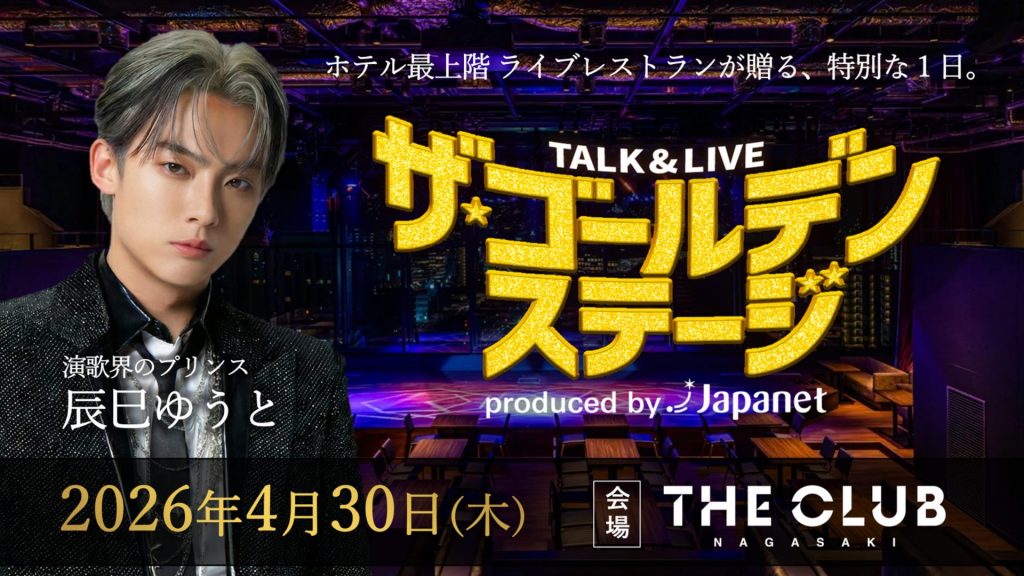長崎スタジアムシティは、毎月ハピネスアリーナで開催しているコンサートイベント「TALK & LIVE ザ・ゴールデンステージ produced by Japanet」の特別版として、2026年4月30日(木)、ホテル最上階のライブレストランでの初公演を決定いたしました。