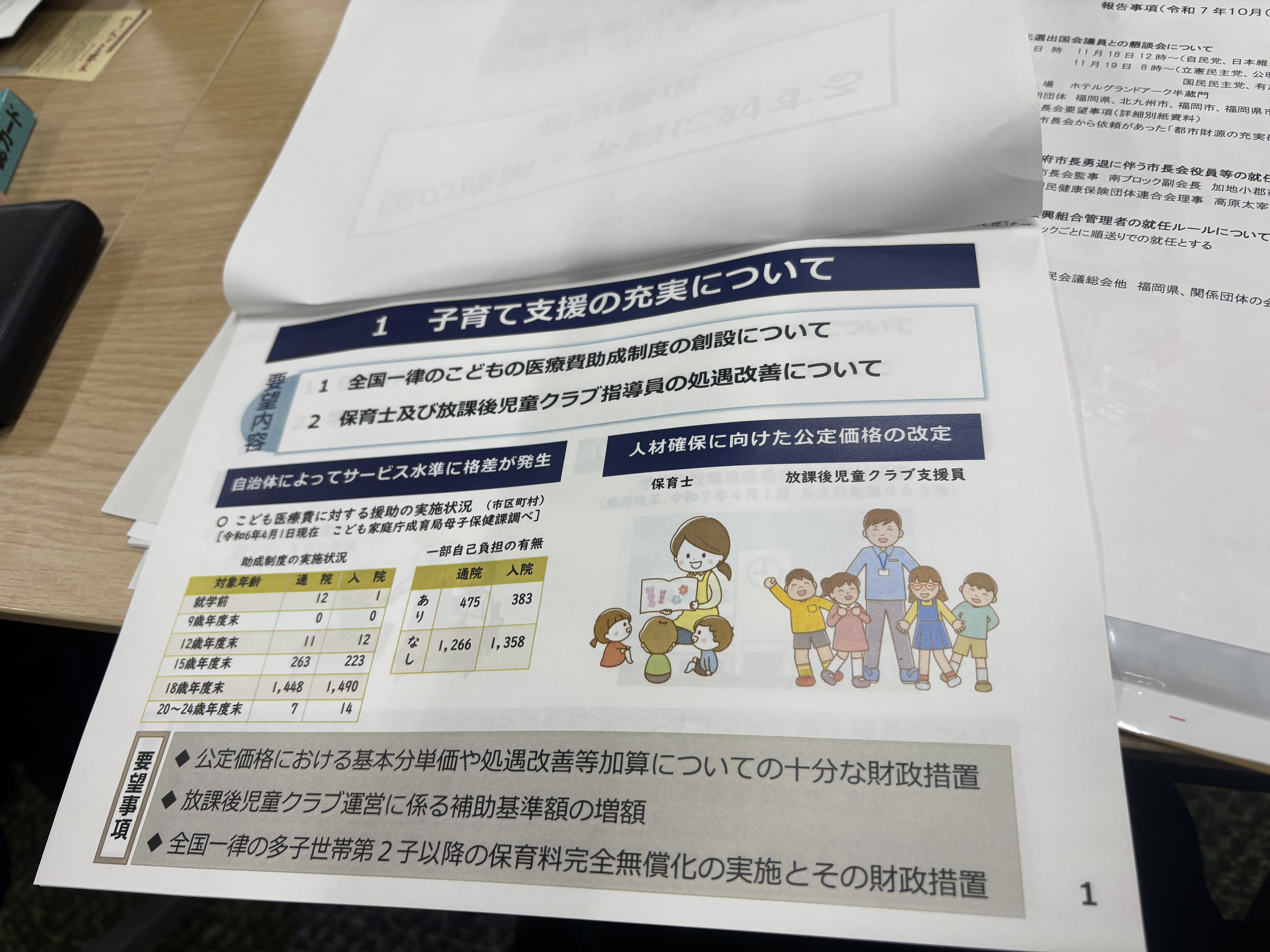 公約に掲げている「こどもの医療費助成制度の創設」や「保育士・放課後児童クラブ指導員の処遇改善」についても内容を確認。