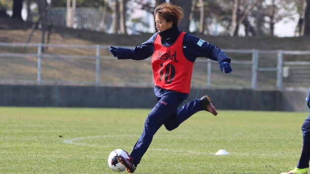 今年の始動日。松田監督は選手たちに対して、「自分たちの良さであるスピードやパワーを失わず、相手も見てボールを動かすこと。その質を上げていこう」とミーティング。「ボールを持って、試合も支配する」(松田監督)テーマを再確認して中断期間もチーム力を高めてきた。「試合を重ねるごとにチームとしてやりたいことは浸透して、表現できている手応えはあります」(脇阪麗奈)。「積み上げてきたことが徐々に試合で出せ始めているので、後半戦はさらにしっかり出していきたい」(宝田沙織)。チームの中心である両選手もこのように話すなど、右肩上がりでシーズンを進めている中、後半戦は攻撃面でのさらなるブラッシュアップも図りたい。皇后杯の準決勝で加入後初ゴールを決めた宝田も、「FKから決めたことは嬉しかったですが、流れの中での崩しも積極的にいきたい。攻撃のところでは周りと合わせていくことも大事ですが、自分がしたいことも要求して色んなことを組み合わせていきたい」と抱負を述べる。「チームとして攻撃面でアイディアを持ってサッカーをすることは松田監督からもずっと言われ続けているので、自分も意識して取り組んできました。やれることは少しずつ増えてきた」(脇阪)中で、チームとして、グループとして、個々として、果敢に相手ゴールに向かっていきたい。