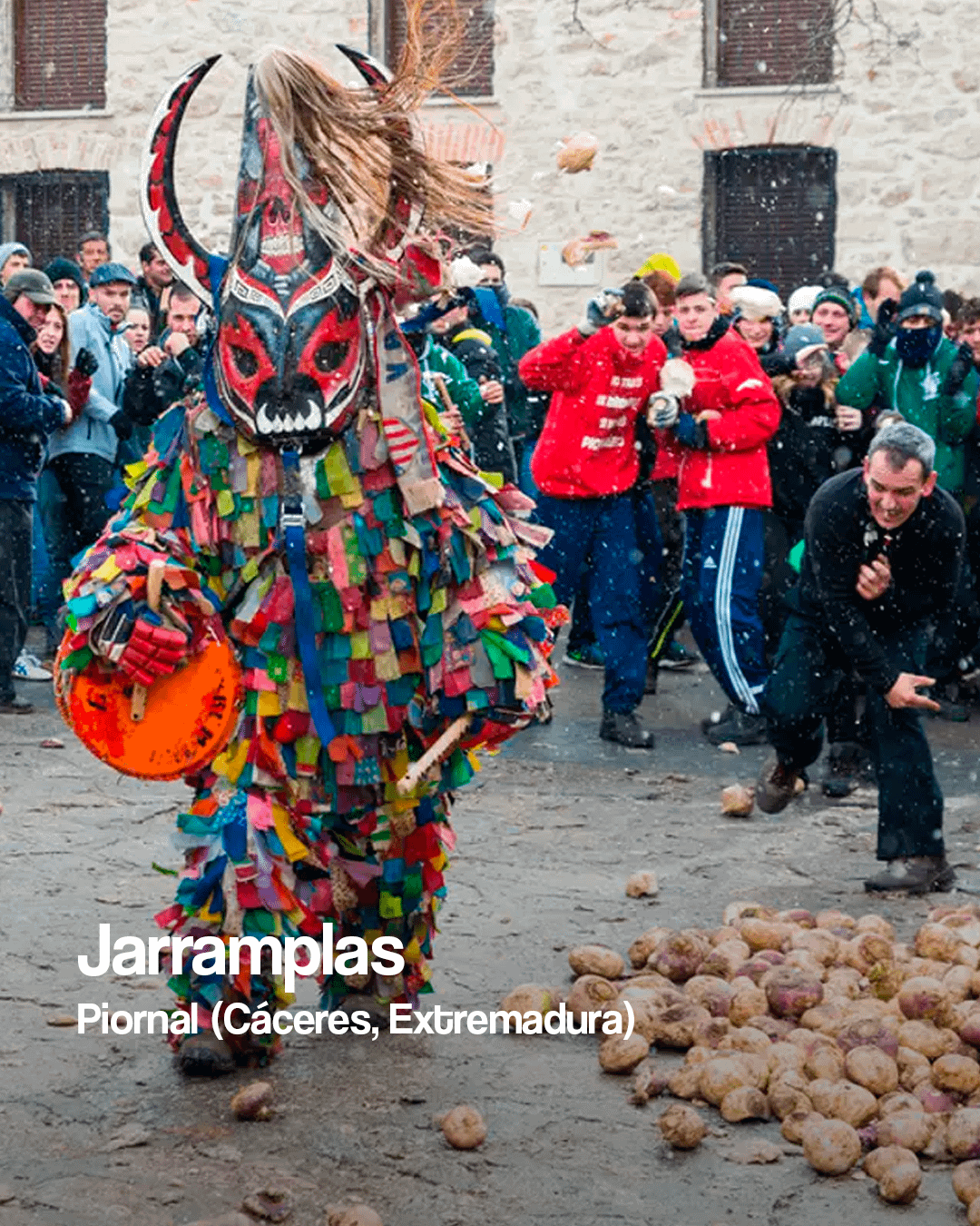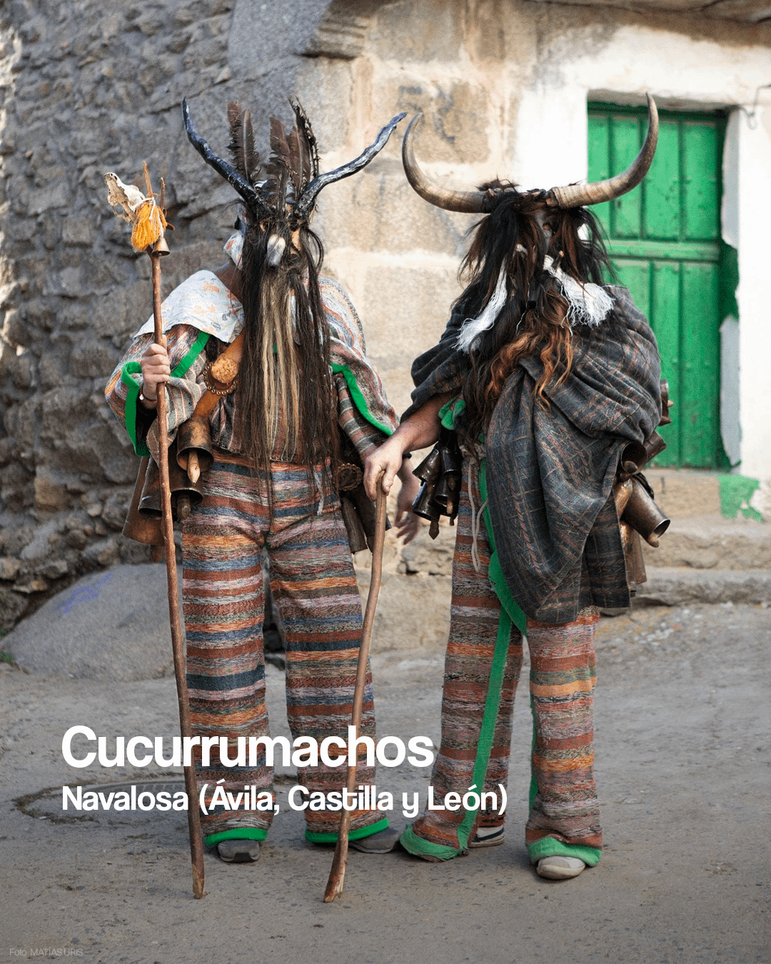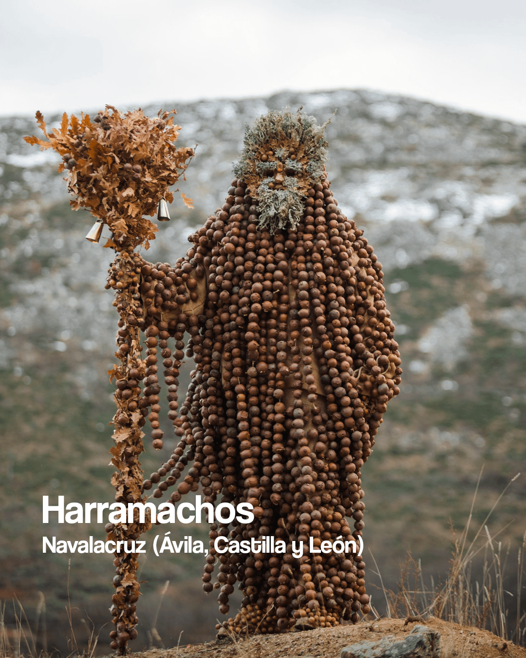私たちの国で最も有名なキリスト教以前の服装と祭りを巡る図像の旅。 スペインには、キリスト教以前の儀式の魔法のような地理的枠組みが保存されており、それが今も町に息づいています。マスクとカウベルは、環境を浄化し、負のエネルギーを追い出し、季節を区切るために使用されていた最も古いカルトと結びついています。私たちの過去の影から現在までを歩く人物たちを発見してください。 Spain