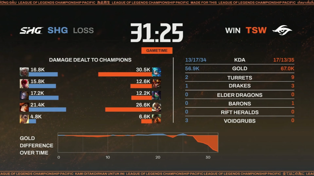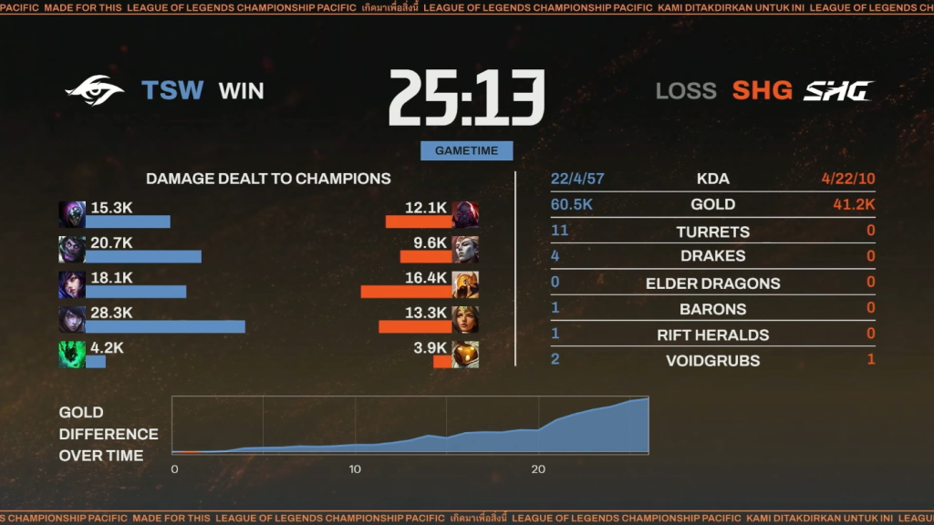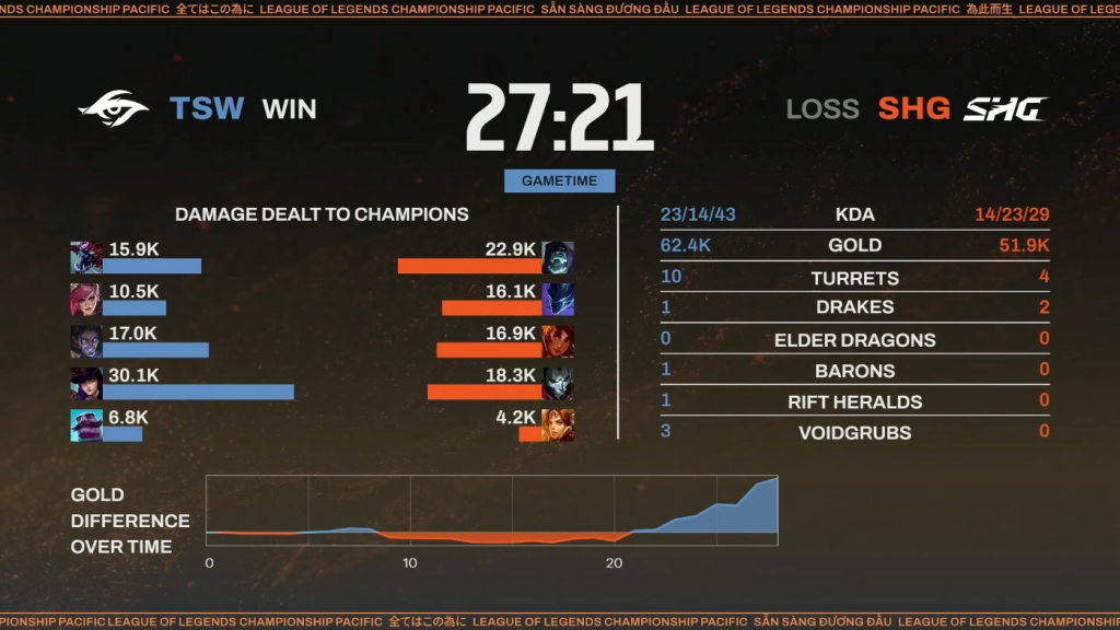 ▲SHG対TSW 第1試合 試合リザルト(本配信より引用)