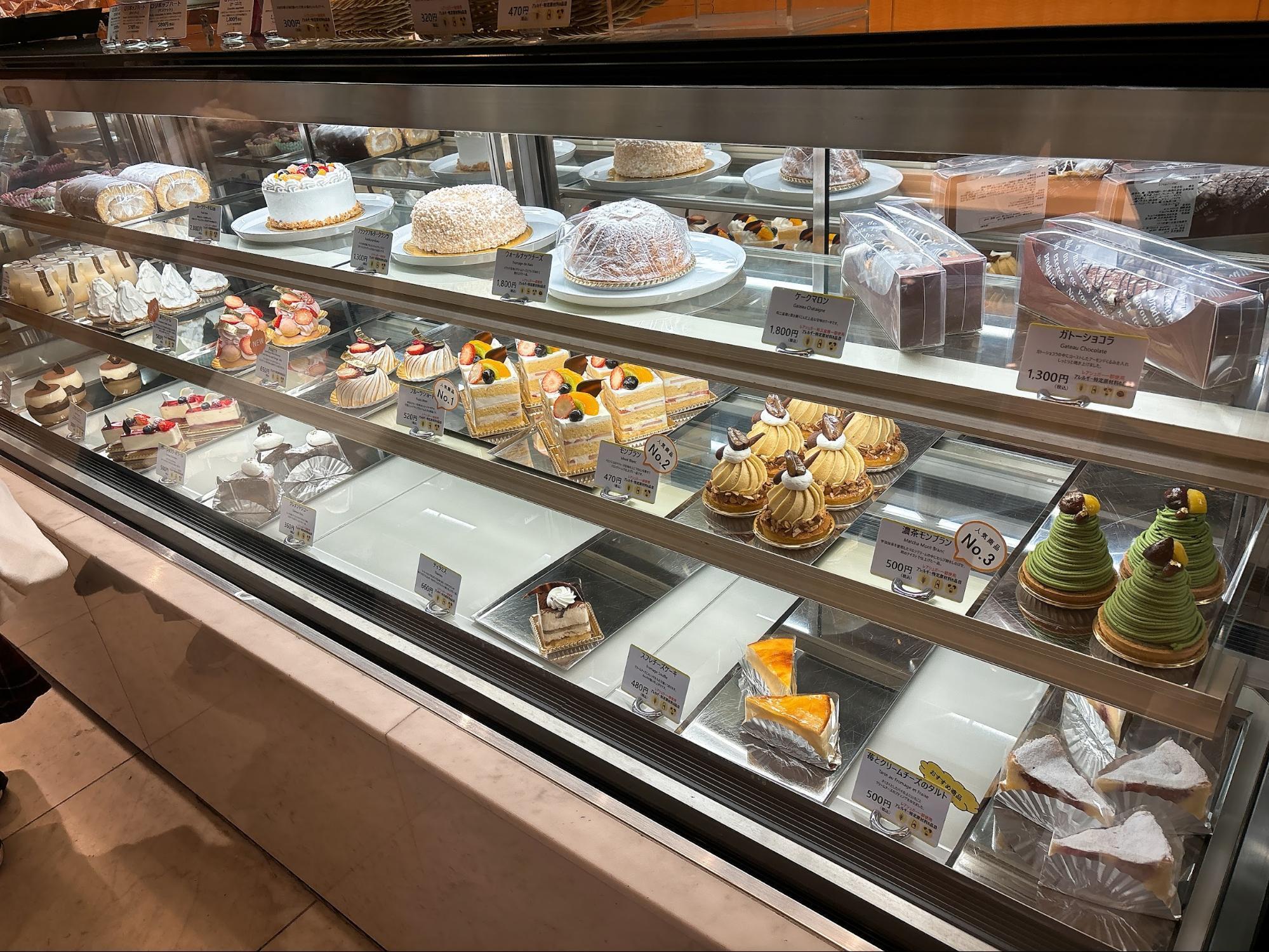 パンもケーキも種類が多く、ショーケースや棚にある商品を見ているだけで楽しくなります。