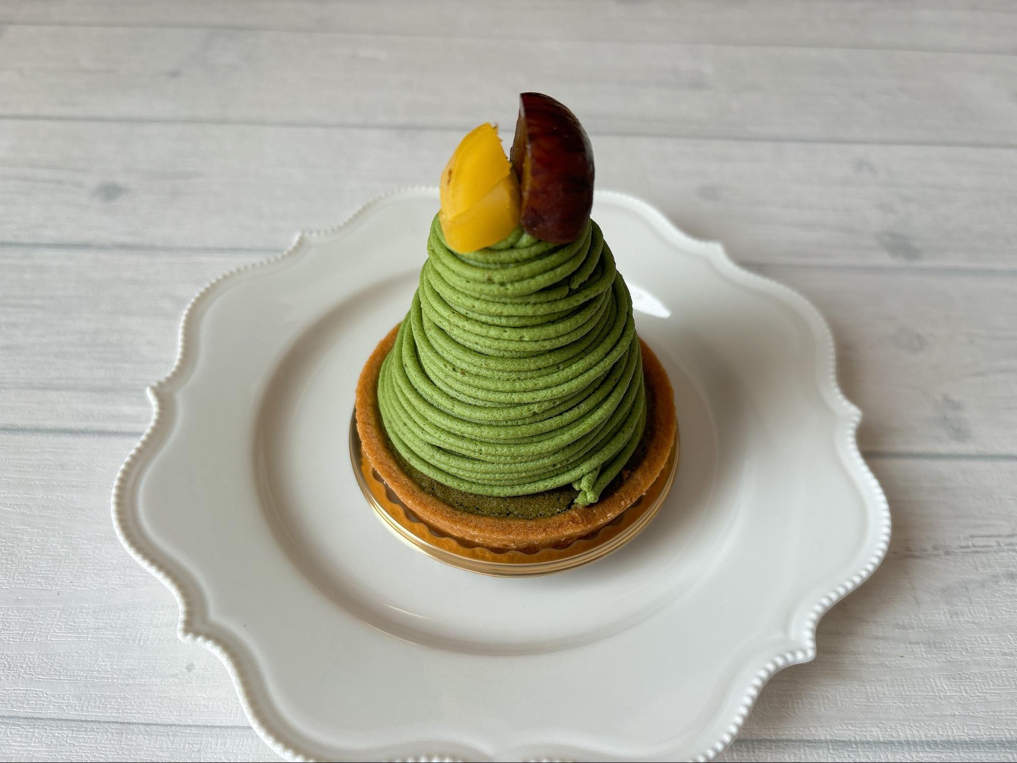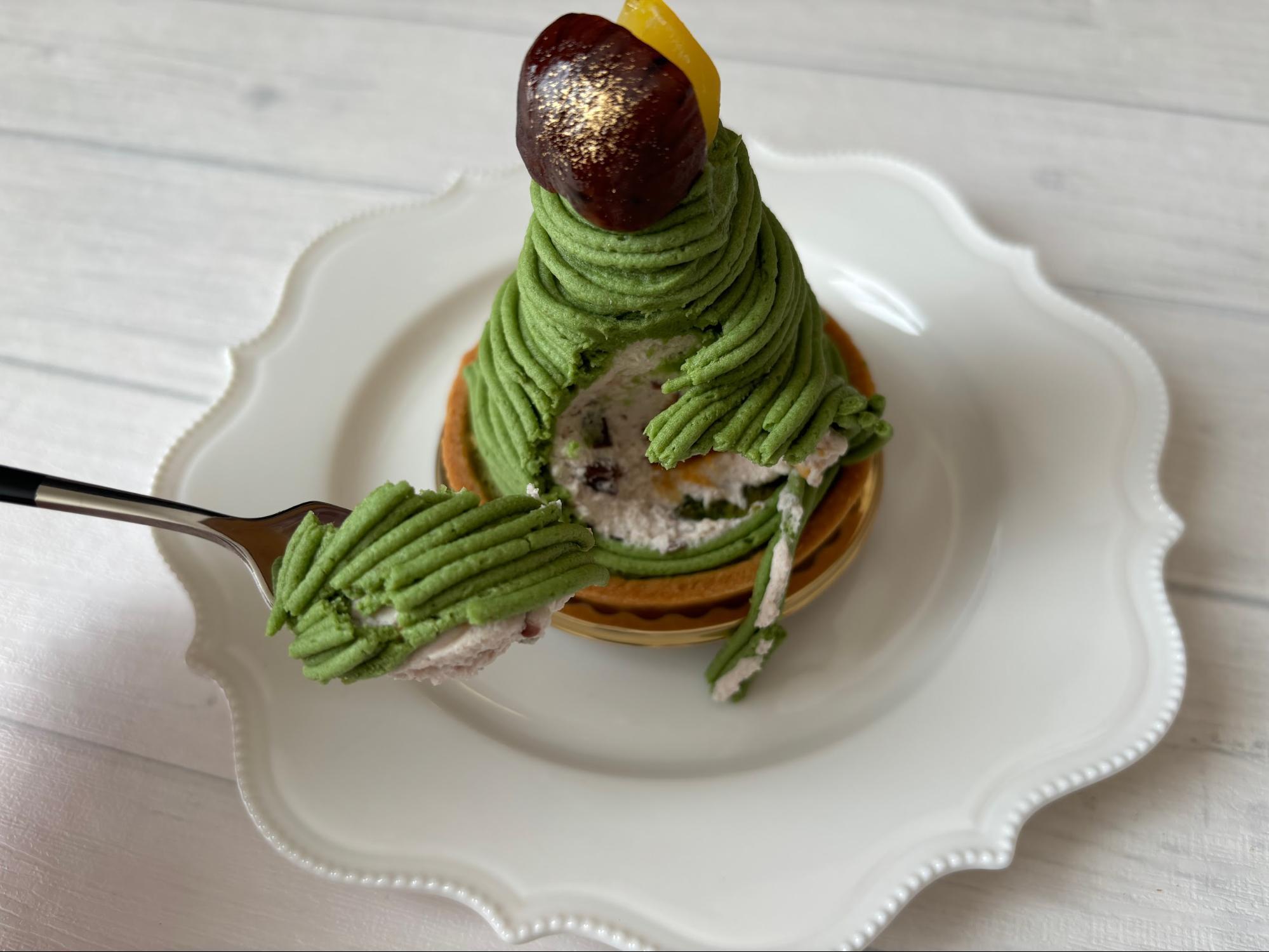 まず「濃茶モンブラン」は、見た目がとても美しく、思わず写真を撮りたくなるケーキです。
