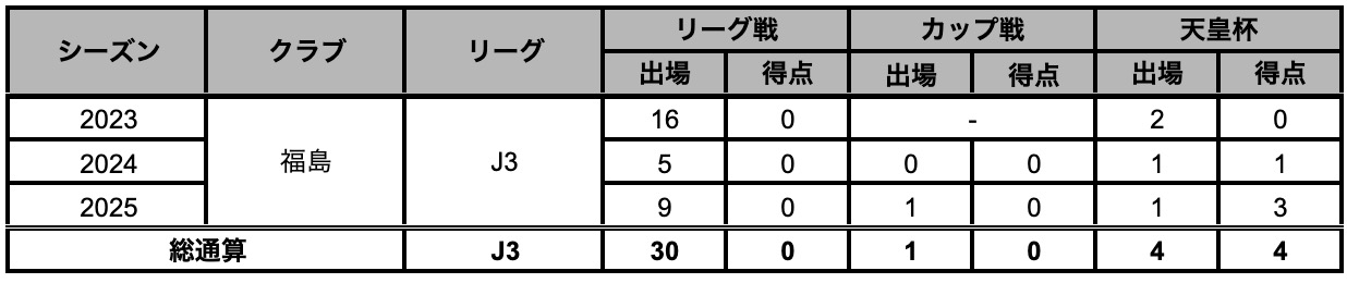 【サッカー歴】⻄⼀サッカースポーツ少年団→S.F.C.ジェラーレ→ベガルタ仙台 Jr ユース→ベガルタ仙台ユース→仙台⼤→福島ユナイテッド FC