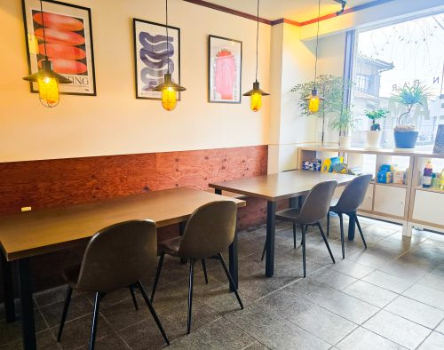店内は、カウンター席とテーブル席を備えたゆったりと落ち着ける空間。