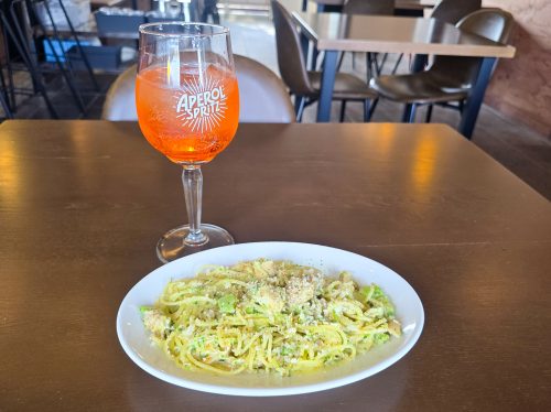 スパーリングワイン「アペロールスプリッツァー」と一緒に楽しむのもおすすめ。