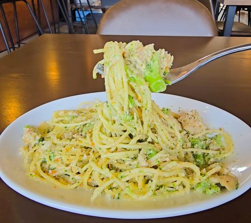 「鳥取県産鶏とブロッコリーのスパイシーなクリームソース スパゲッティ」をオーダー。