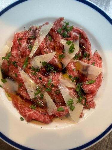 和牛もも肉のカルパッチョなど一品料理も充実しています。