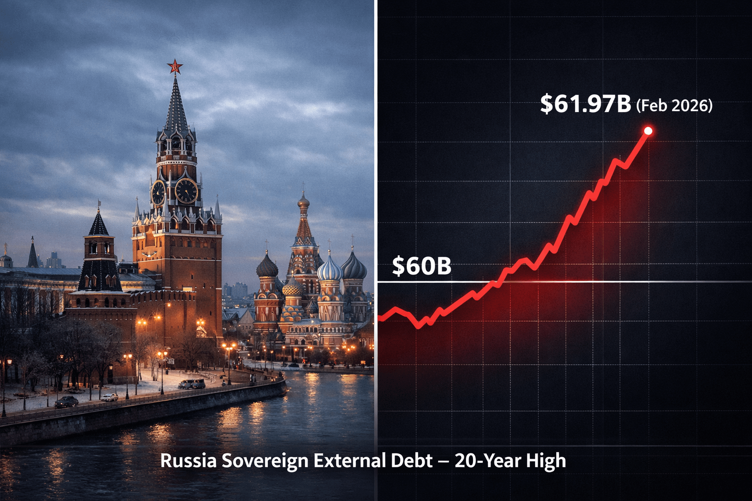 新しいデータによると、ロシア政府の対外債務は2026年2月1日時点で619億7000万ドルに増加し、20年ぶりの高水準となり、2006年以来の水準に戻った。この増加は、制裁と市場アクセスの制限の中で外国債権者に対する債務が増大していることを反映している。