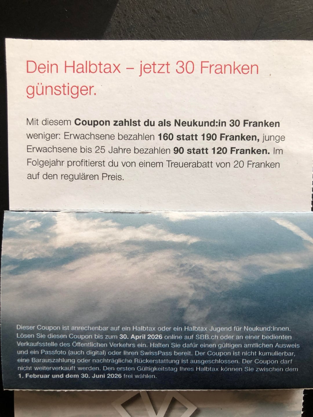 Twitter Pinterest Facebook Tumblr LinkedIn Bluesky Reddit Threads こんにちは。最近、ハルブタックス用のクーポンを受け取りました。私個人としては、それらを使用できる人を知りません。なぜなら、あなたは新規顧客でなければならないからです。有効期限は 4 月 30 日までです – これらが皆さんのお役に立てれば幸いです。 Switzerland