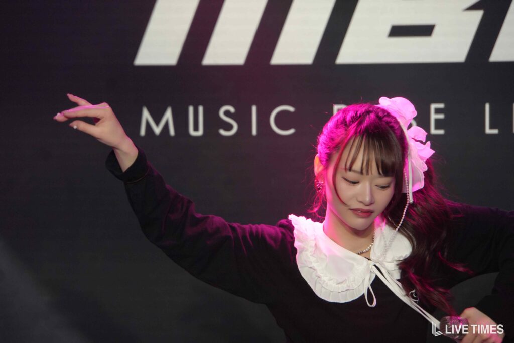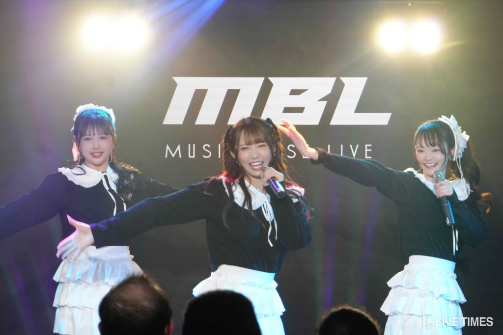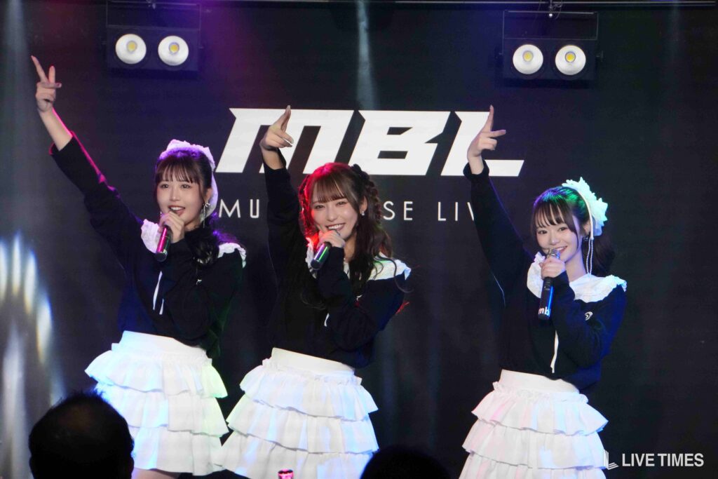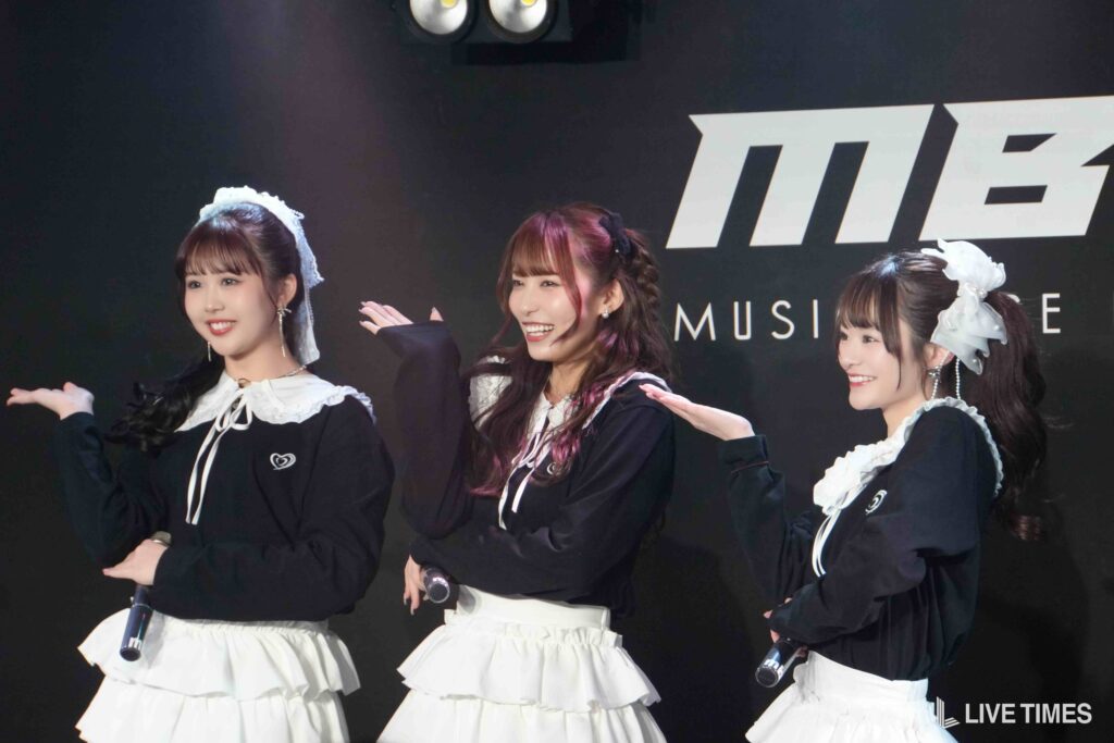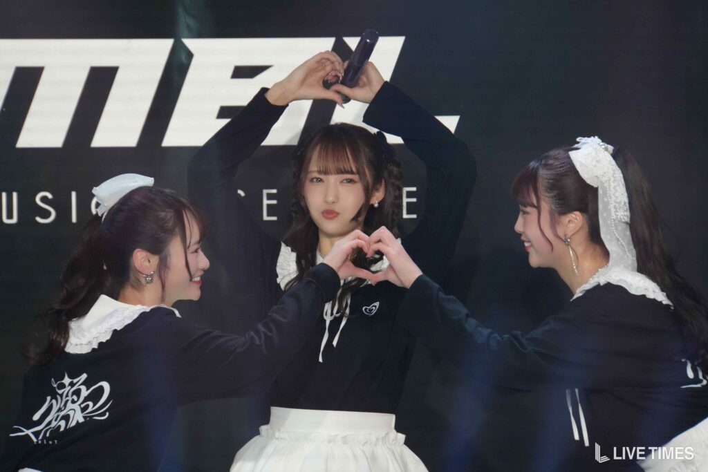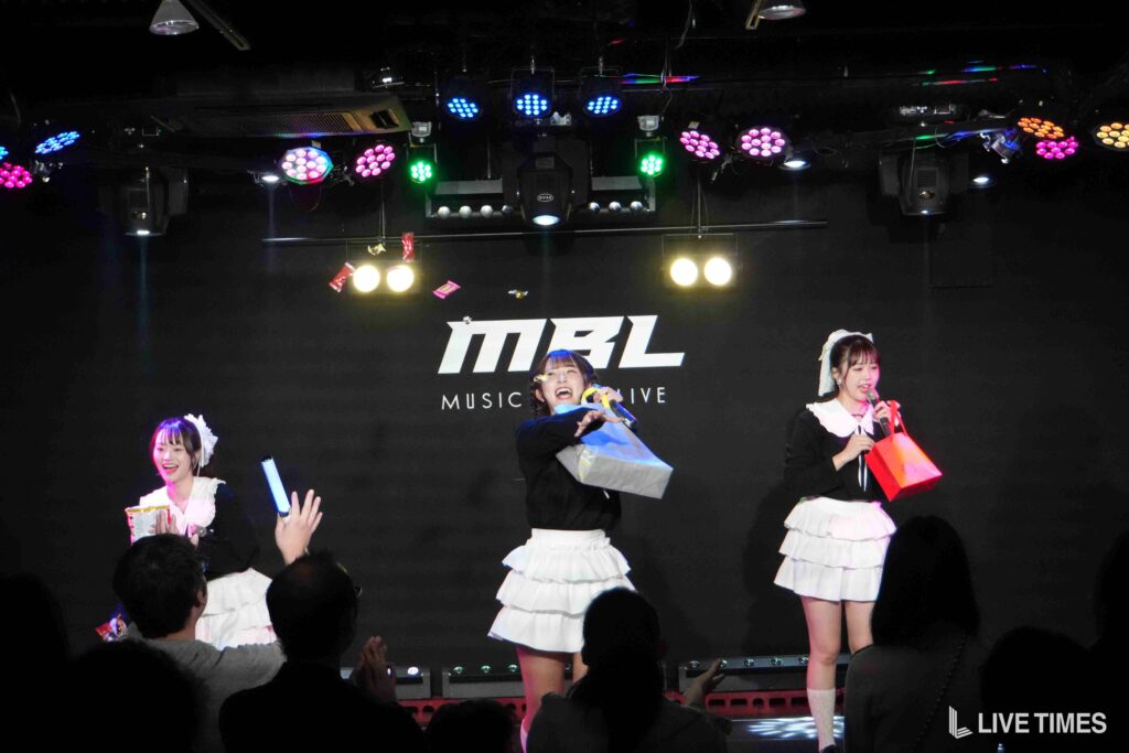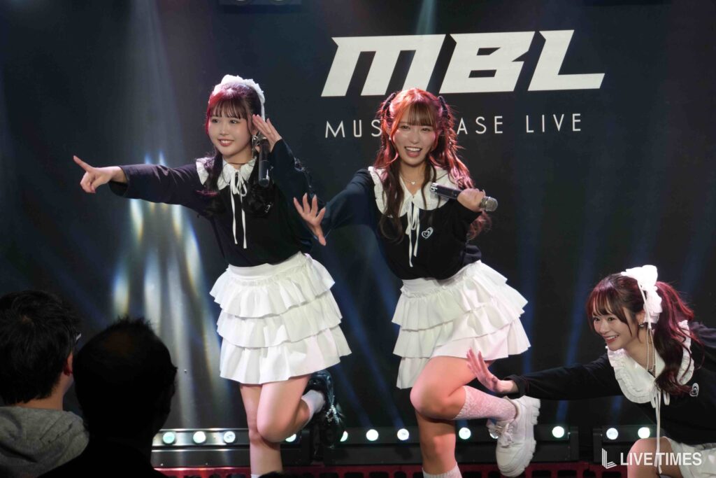 1曲目のFRUITS ZIPPERのカバー『ハピチョコ』では、息の揃った可愛らしい振付と、3人が掛け合うように展開するパフォーマンスで観客の心をつかんだ。