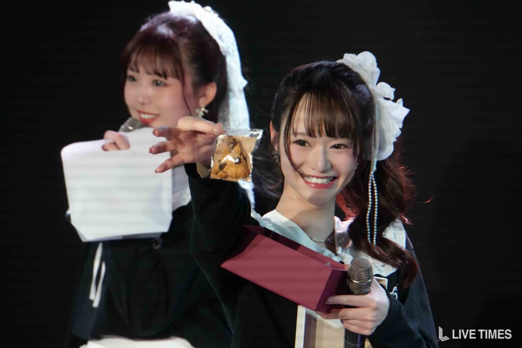 MCを挟み、じゃんけん大会がスタート。メンバーそれぞれが手作りしたバレンタインチョコをかけて観客とじゃんけんで対決した。照山楓香、すずきここなはこだわりの手作りチョコを披露。一方、木村沙由里は「一部手作りです」と告白し、「チョコスコーンは手作りしたんですけど、マシュマロは買っちゃいました」と会場は再び笑いに包まれた。