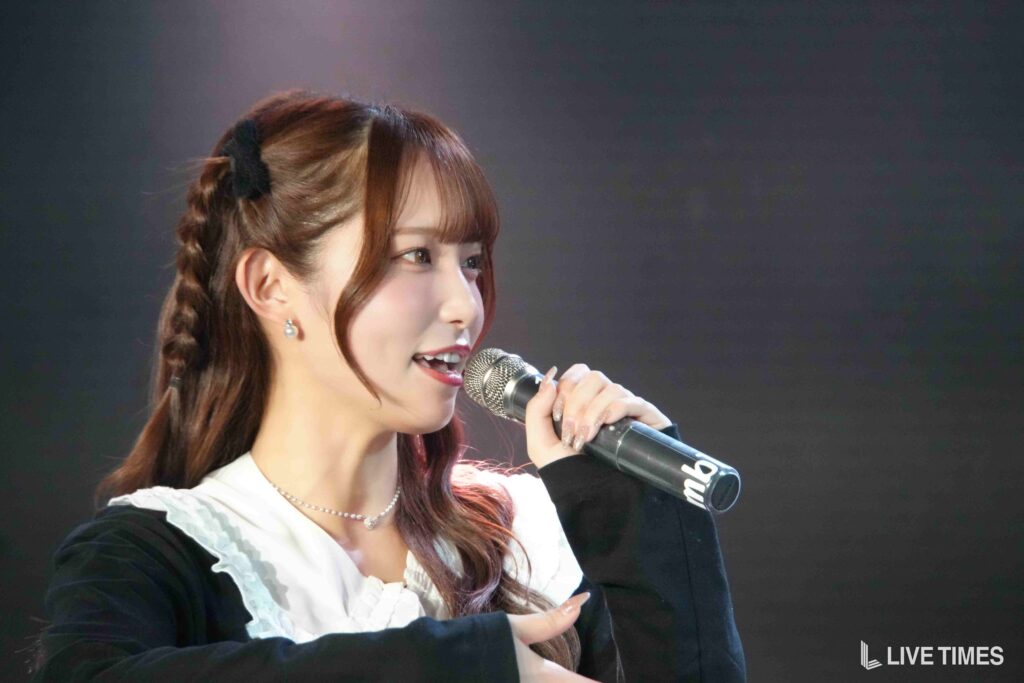 4曲目に披露されたのが、この日最大の注目であるデビューシングル『運命は君ルート!』だ。観客全員がこの日初めて耳にする中、3人の堂々としたパフォーマンスが会場を引き込んだ。中でも、すずきここなのダンスソロパートはキレのある動きで存在感を放ち、デビュー曲にふさわしいハイライトとなった。
